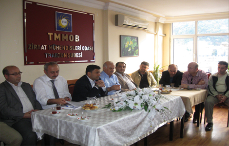 Ziyarete Prof. Dr. Bıykılıoğlu’nun yanı sıra Merkez İlçe Başkanı Temel Altunbaş ve partililer katıldı. Ziraat Mühendisleri Odası Trabzon Şube Başkanı Yahya Çavdar, "Trabzon’da yaşadığımızdan dolayı Trabzon’da yapılacak çalışmalarla ilgili gerek mesleki anlamda gerekse bir sivil toplum örgütü olmamız nedeniyle diğer sosyal olaylarda birçok fikir beyan ediyoruz. Bu anlamda zaman zaman sizlerle de istişare ediyoruz. Burada Trabzon’un sorunları, tarımın sorunları, mesleki sorunlarımız ve Türkiye geneliyle ilgili bazı sorunlarla istişare imkanımız olacak" ifadelerini kullandı. Ak Parti Merkez İlçe Başkanı Temel Altunbaş’da, "Ak Parti olarak sivil toplum örgütlerini ziyaret etmek amacıyla yola çıktık. Odalar serbest meslek erbaplarının öncelikle haklarını koruyan toplum kuruluşlarıdır" dedi. Milletvekili Prof. Dr. Bıyıklıoğlu, tarıma, fındığa ve çiftçiye yapacakları her türlü katkıyı ziraat mühendislerinin vereceği bilgiler doğrultusunda yönlendireceklerini söyledi. Prof. Dr. Bıyıkıloğlu, Karadeniz’in aktif balık çiftliklerinin yoğun hale getirileceğini belirterek, “Bunların örnekleri Karadeniz’in bazı yörelerinde görüyoruz. Balık çiftliklerinde yetişen balıklar da iyi oluyor hem de yemleri temiz oluyor. Buralara destek olmalıyız. Ayrıca Karadeniz’de salebi ön plana çıkarmalıyız. Salebi Karadeniz’de yetiştirdiğimiz zaman Karadeniz’den dışarıya göç de olmayacaktır. Çünkü insanlarımız yaylaları çok seviyor. Türkiye’de 100’e yakın bal ormanı var. Bunların bir tanesi de Uzungöl’de yetişiyor ve bu bal dünyada rağbet görüyor. Hayat köyde ve yaylada” dedi.