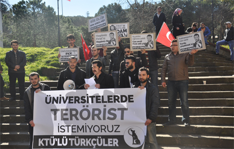 KTÜ’lü Türkçüler adı altında buluşan öğrenciler, üniversitenin Kanuni yerleşkesinde bir araya gelerek, üniversitelerde terörist istemediklerini söyledi.