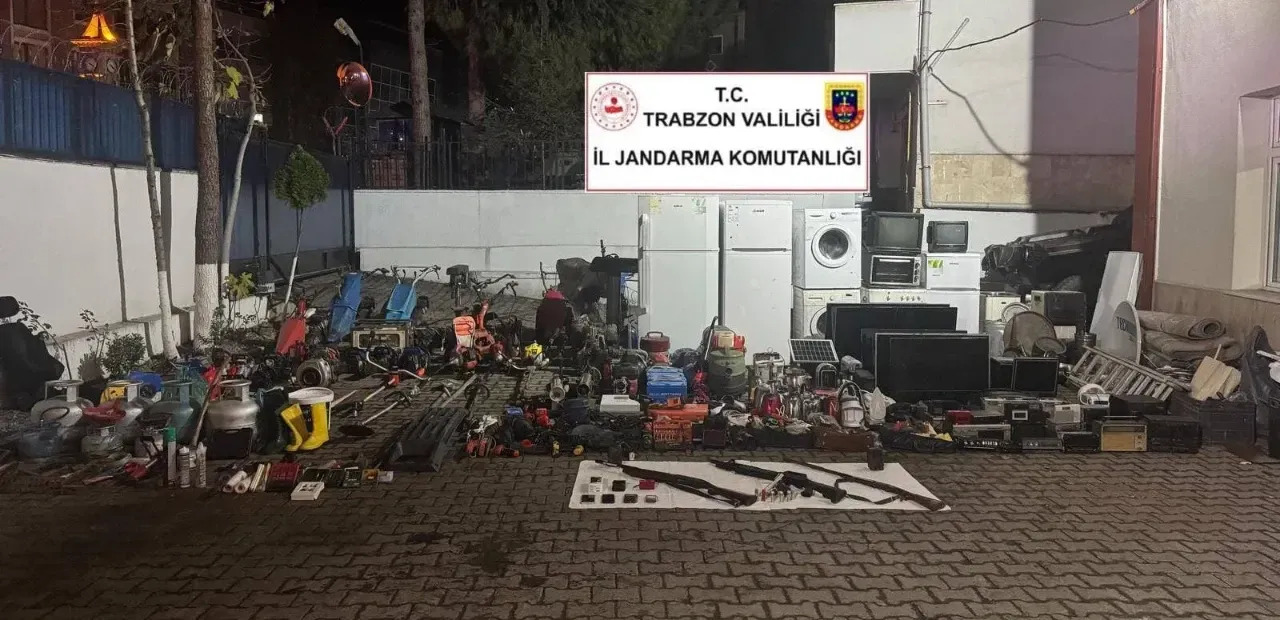 3 adet Yivsiz Tüfek,1 adet Kurusıkı Tabanca, 6 adet 12 cal. Fişek, 4 adet Cep Telefonu, 2 adet Fotokapan, 1 adet Fotoğraf Makinesi, 3 adet Buzdolabı, 3 adet Çamaşır Makinası, 1 adet Fırınlı Ocak, 1 adet Mikrodalga, 9 adet LCD/LED TV, 3 adet Tüplü TV, 3 adet Bilgisayar Monitörü, 2 adet Aspiratör, 1 adet Tüplü Isıtıcı, 1 adet Hamur Yoğurma Makinası,14 adet Su Isıtıcı, 2 adet Ütü, 8 adet Saç Kurutma Makinesi, 1 adet Dürbün, 1 adet Şofben, 4 adet Mutfak Tüpü, 3 adet Piknik Tüpü, 15 adet Elektrikli Süpürge, 2 adet Elektrikli Isıtıcı 13 adet Teyp, 2 adet Masaüstü Telefon, 2 adet Makaralı Seyyar Kablo, 4 adet Uydu Alıcısı, 4 adet Oto Teyp, 1 adet Dijital Fotoğraf Makinesi, 1 adet Elektrikli Fan Soğutucu, 1 adet Çanak Anten, 13 adet Çim Biçme Motoru, 4 adet Çim Biçme Makinası, 9 adet Ağaç Kesme Motoru, 2 adet Jeneratör, 1 adet Kaynak Makinası, 3 adet El Planyası, 5 adet Spiral Makinası, 6 adet Matkap, 2 adet Dikiş Makinası, 1 adet Taşlama Makinası, 1 adet Ayı Savar Makinası, 2 adet Plastik Boru Kaynak Makinası, 4 adet Akü 7 adet Halı, 2) top Alüminyum Tel Kablo, 1 adet Plastik Masa, 1 adet Alüminyum Merdiven, 8 adet Tahra, 1 adet Orak, 8 adet Bakır Tencere ele geçirilerek suçlular hakkında soruşturulma başlatıldı