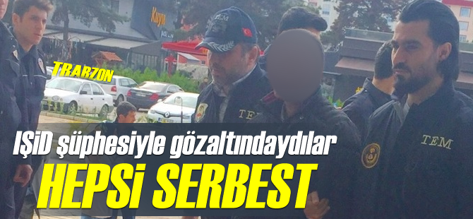 Trabzon Emniyet Müdürlüğü Terörle Mücadele Şubesi’nde 4 gündür sorgulanan 8 şüpheli dün adliyeye sevk edildi. Haklarındaki suçlamaları kabul etmedikleri öğrenilen şüpheliler, çıkarıldıkları mahkemece tutuksuz yargılanmak üzere serbest bırakıldı.