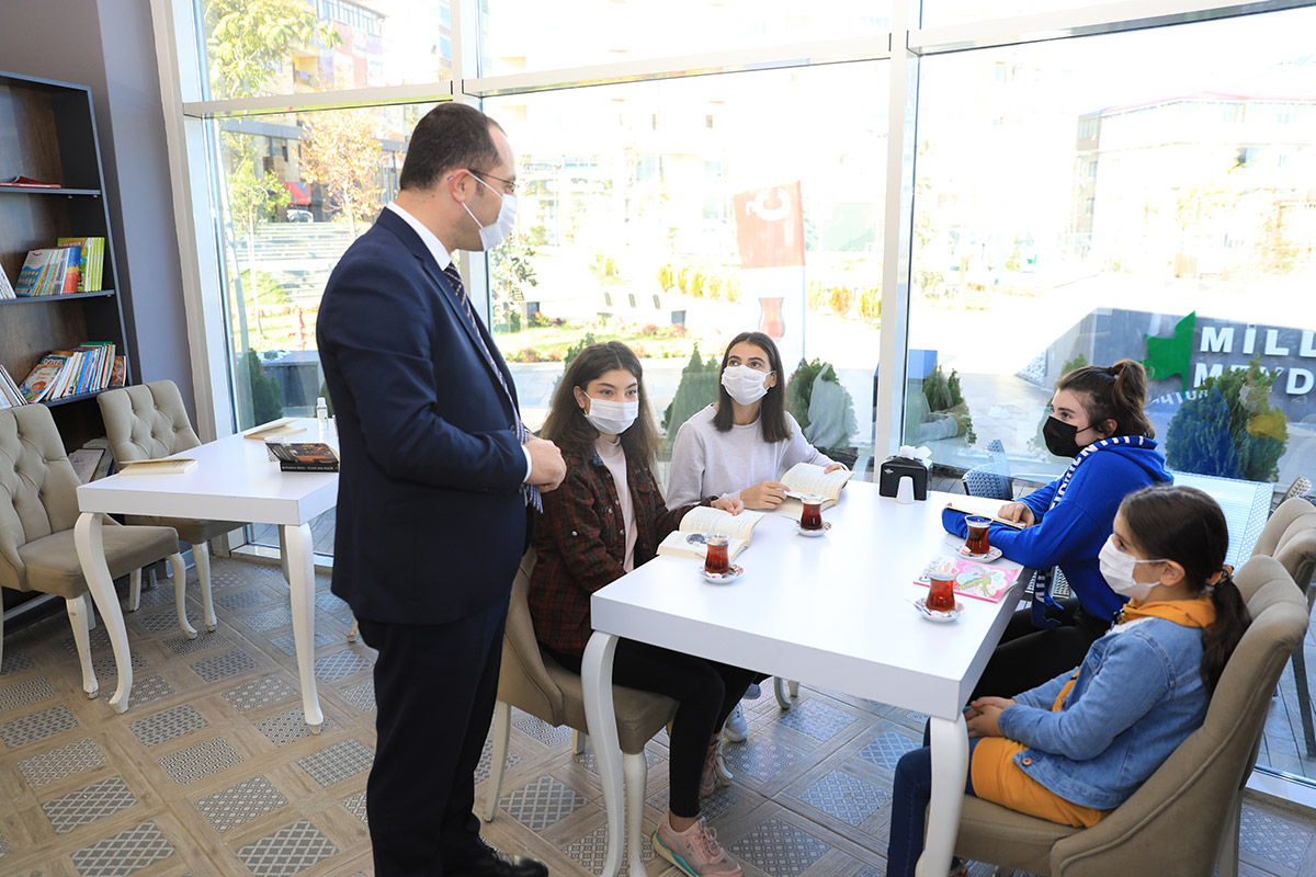 Millet Bahçesi Kütüphanesi'nde kitap okuyan vatandaşları ziyaret eden Akçaabat Belediye Başkanı Osman Nuri Ekim, kitap okuyanlara çayların ücretsiz verileceğini belirterek, "Millet bahçemiz 5 Haziran'da Cumhurbaşkanımızın telekonferans ile katılarak açılışını yapmasının ardından halkımızın hizmetine açıldı. Kıraathanemiz içerisindeki kütüphane bölümünü açtık. Orada gençlerin, çocukların ve yetişkinlerimizin gelip rahat bir şekilde kitaplarını okuyacaklar. Ayrıca bir kampanyada yaptık. Kütüphaneye gelerek kitap okuyanlara çaylarını Belediye şirketimiz tarafından ücretsiz olarak vereceğiz. Okumayı teşvik edici bir durum. Hem de insanları buraya çekebilmeyi hedefliyoruz. İnşallah faydalı olur" dedi. Millet bahçesine ücretsiz internet için wifi sisteminin kurulacağını kaydeden Başkan Ekim, "Millet Bahçemiz içerisinde biyolojik göletiyle çocuk oyun alanıyla çardakları ve seyir alanlarıyla birlikte geniş bir alana sahip. Vatandaşlarımızın büyük bir ilgisi var. Özellikle hafta sonları kalabalık bir topluluk buraya gelerek hem pikniklerini hem de çocuklarıyla burada eğleniyorlar. Kitap okumak isteyen veya dinlenmek isteyenler kıraathanenin içerisinde zamanını geçirmiş oluyor. Büyükşehir Belediyemizle beraber ortaklaşa bir proje yürütüyoruz. Şehir içinde 3-4 noktaya ücretsiz internet yapacağız. Bu projeyle millet bahçesi de internetine kavuşmuş olacak" ifadelerini kullandı.