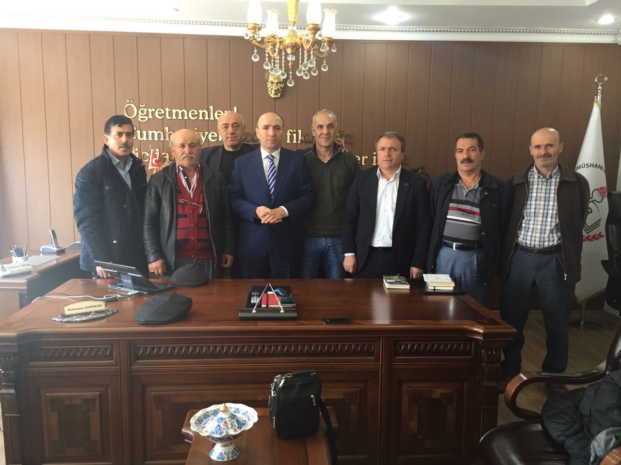 Aslen Akçaabat ilçesi Acısu mahallesinden olan Şahinkaya'yı Akçaabat'tan giden Acısu Mahallesi muhtarı Ahmet Özkurt, köy yönetiminden aza arkadaşları, eski mahalle muhtarı Tahsin Çelik ve emekli öğretmen Abdi Şahinkaya Gümüşhane il milli eğitim müdürü Muhammet Şahinkayayı makamında ziyaret ettiler.