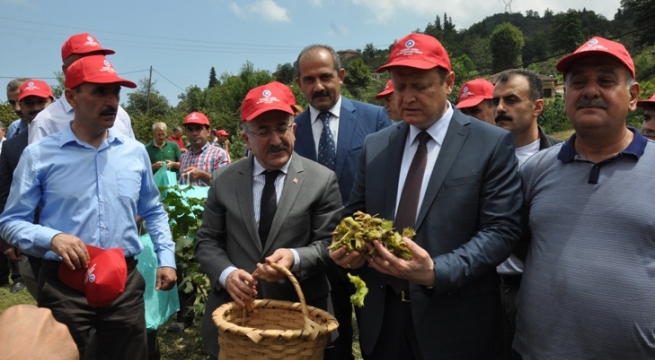 Tranzon Ticaret Borsasının önderliğinde 2013 yılında baslatılan fındıkta verim ve kaliteyi artırma projesi kapsamında Trabzon'da ilk yapılan 10 bahçede dallarda fındıklar oluşmuştu. Yomra'nın ikisu mahallesindeki Ömer Ustaömerolu'na ait 3 dönünmlük yaşlı bahcede sökülerek yerine ikili ve tek dal sistemi ile dikilen Gresun kalite fındıklar törenle toplanarak ilk hasat gerçekleştirildi. Ocak 2014 de dikilen bir yaşındaki fidanların daha dördüncü yılını doldurmadan ürün vermesi ,fındıkta verim ve kalitenin arttırılması hedefindeki doğru tercihi ortaya koydu .Normalşartlarda yenilenen bahçelerde ürün alımı6-7 yıl içinde gerçekleştirilebiliyor. 2014 yılında yenilenen 10 yaşlı bahçe sökülerek yeniden dikilmişti .2015 yılında ise devletin sağladığı destekle sökülen yaşlı bahçelerde 53 tane daha eklenerek sayı 63 e yükselmişti. proje ile Trabzonda son yılın ortalamasına göre dekarda 80 -90 kiloğram cıvarında olaan verimin asgari 150-200 kiloğrama yükselmesi hedefleniyor . Proje fındık sektöründeki diğer kuruluşlar tarafından d örnek alınarak diğer illerde uygulanırken ,devlet tarafından da hayata geçirilmesi konulması için çalışmalar balşatılmıştı. Fındıkta Verim ve kaliteyi artırma projesi,Trabzon Ticaret Borsası'nın koordinasyonunda ,gıda tarım gurubu Trabzon Ticaret ve S anayi Odası ,Doğu Karadeniz ihracatçı birliklerinin katkılarıyla uygulanıyorçProje fındık üretilen resmi ve özel kuruluşlar tarafından da destekleniyor . Ömer Ustaömeroğlunun örnek bahçesinde ilk fındık hasadına basın mensupları ve trabzon valisi YÜCELYAVUZ, yetkililerden yapılan çalışmalar hakkında bilgi aldı . Sayın Vali YÜCEL YAVUZ basına açıklamada bulundu,fındık hasadı ile ilgili bol verim olsun bol kazancolsun temennisinde bulundu bu işi bilen kişilerin yaptığı katkıyla verim yükseliyor ,devlet sivil toplum bir araya gelince iyi bir netice alıyoruz,bu yönüyle herkezi tebrik ediyorum fındık bölgemizin en önemli gecim kaynağı olarak biliyoruz. Bu yönüyle projeye öncülük yapan ticaret borsamıza ,bu konuda tüm öncülük eden taraflara bakanllığımıza ve mülk sahiplerine teşekkür ediyoruz ve örnek olmasını diliyorum bundan sonrada halk olarak bıleceğiz ihracatı arttırmak milli gelirimize katkı sağlamak 15 temmuzdaki dayanışmadan bahsetti basın mensuplarınının dayanışma konusunda herbirirnize ayrı ayrı teşekkürlerini bildirdi. Örnek bahçe fındık projesini çok beğendiğini söyledi kim bu projede emeği olandan allah razı olsun millet adına dedi. olması gereken bunu yaptık ve yapacagız emek sarfetmek gerek, fındığı kırdık içinde boşluk yok dolu tam kapasite bunu sağlamak içinde gönül vermek gerek emek sarfetmek gerek ve bunuda yaptık vede yapacağız ve hayırlı olsun dileklerinde bulundu. FOTO ve HABER AHMET HULUSİ ESERCAN