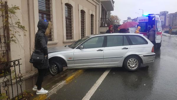 Trabzon'un Ortahisar ilçesi Arafilboyu Aşıklar Parkı karşısında meydana gelen kazada bir otomobil, Trabzon Barosu'nun bulunduğu tarihi binaya çarptı.