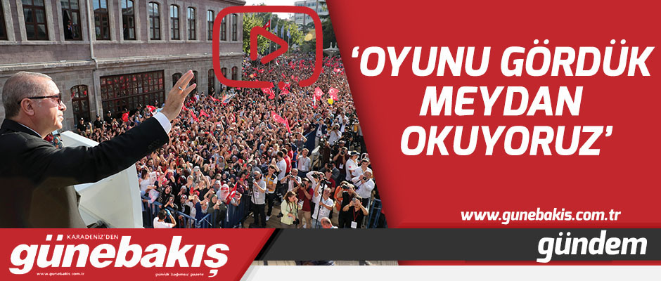 ABD’nin oyununu gördüklerini ifade eden Cumhurbaşkanı Erdoğan, “Peki fırtınanın sebebi nedir? Ekonomik hiçbir sebebi yok. Bu işin bir adı var mıdır? Vardır, Türkiye'ye operasyon çekmektir. Trabzon'dan ilan ediyorum, oyununuzu gördük ve meydan okuyoruz. Şunu bilmelerini istiyoruz. Teslim olmayacağız, üretmeye devam edeceğiz. İstihdamımızı genişletmeye devam edeceğiz. Fabrikalarımızın çarklarını işletmeye devam edeceğiz. Siz dolarla üzerimize gelirseniz, biz de başka yollarla işlerimizi yürütmenin çarelerini arayacağız.” dedi. Trabzon meydanında turistleri gördüm. Kardeşlerim, siz zaten misafirperversiniz. Onlara misafirperverliğinizi daha da artırarak devam ettirin. Çünkü onlar size, birileri dolar kaçırırken onlar da size dolar getiriyor. Birileri kapıları kapatır, Mevla’m başka kapılar açar.” dedi.