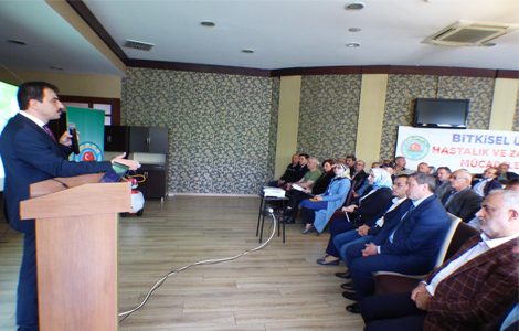 Çiftçilere hastalık ve zararlılarla mücadele eğitimi Bayer Karadeniz Bölgesi teknik personelleri ziraat mühendisleri Mustafa Onur Hanedar ve Hüseyin Akkaya tarafından verildi.