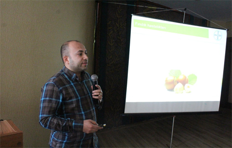 Bayer Karadeniz bölge sorumlusu Mustafa Onur Hanedar; Çiftçilere ilaçlamada mutlaka tavsiye ürünlerin kullanılması ve kullanımı esnasında kafalarına takılabilecek sorunları Ziraat Odası teknik ekibine ve bizlere sormaları konusunda uyarılarda bulunuldu. Özellikle Mayıs ve Haziran aylarında Fındıkta yaklaşık %30 ürün ve kalite kaybına sebep olan külleme hastalığı mücadelesinin zaman geçirmeden 15 gün ara ile yapılması gerekmektedir külleme ilacı ile birlikte Fındıkta zararını her geçen gün arttırıldı artırdığını gözlemlediğimiz yeşil kokarca zarar sana karşı mücadeleyi gecikmeden yapmanız ürün kaybını azaltacaktır.