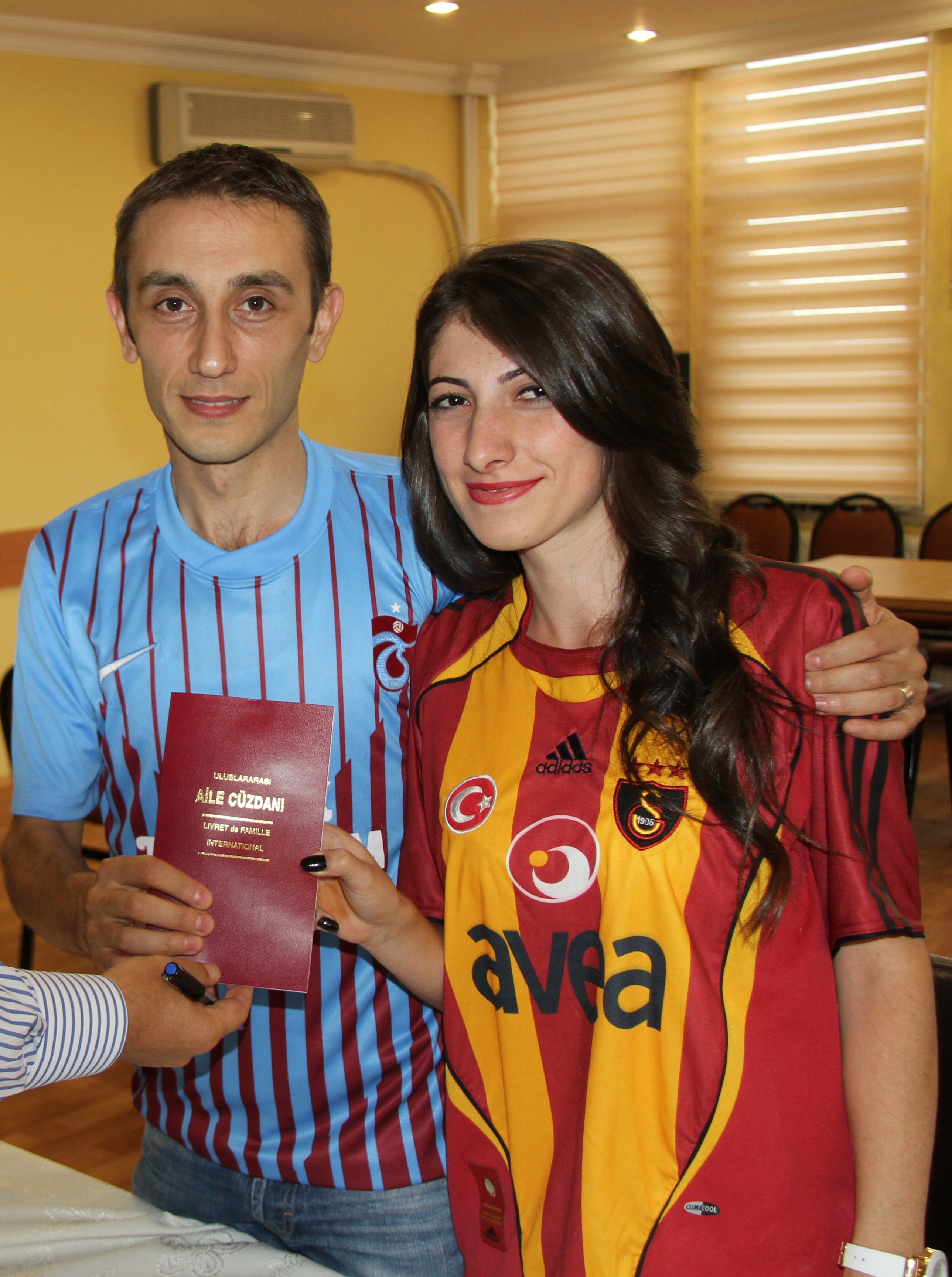 Akçaabat Belediyesi Evlendirme Memurluğu tarafından bu yıl kıyılan 292.nikah bir hayli ilginç oldu. Trabzonlu aynı zamanda Trabzonspor taraftarı Ramazan Şişman ile Giresun Göreleli fanatik Galatasaraylı Sinem Yılmaz nikah merasimine formalarıyla gelince renkli görüntüler ortaya çıktı. Renkler farklı olsada gönüllerin bir olması gerekirdi ve nitekim öyle oldu.