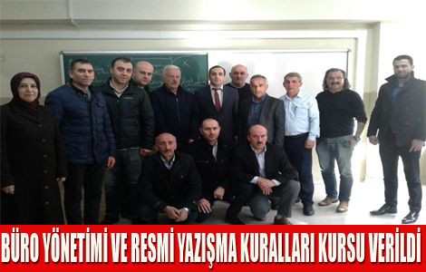 İlçe Milli Eğitim Müdürlüğü'ne bağlı okul/kurumlarda memur olarak görev yapan 19 personele Şube Müdürü Ali Can tarafından 12-16/02/2018 tarihlerinde Büro Yönetimi ve Resmi Yazışma Kursu verildi.