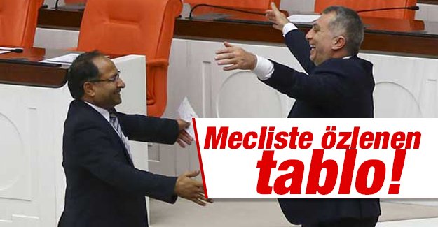 Bütün partilerin tebriğini alan Purçu, Ak Parti sıralarından da coşku ile karşılandı. Ak Parti İstanbul Milletvekili Metin Külünk, Purçu'yu kollarını açarak karşıladı ve kucakladı.