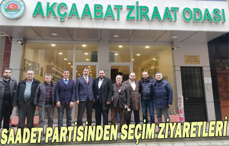Saadet Partisi Akçaabat Belediye Başkan Adayı Oman Tuğrul Gazi Bayram ve beraberinde Saadet Partisi İlçe yönetimi ile seçim çalışmalarına Akçaabat Ziraat Odası Başkanlığını,S.S Akçaabat Trabzon Söğütlü Ve Mersin Minibüsçüleri 1 Nolu Motorlu Taşıyıcıları Kooperatifini ve Eğitim-Bir-Sen Akçaabat İlçe temsilciliğini ziyaret ederek destek istedi.