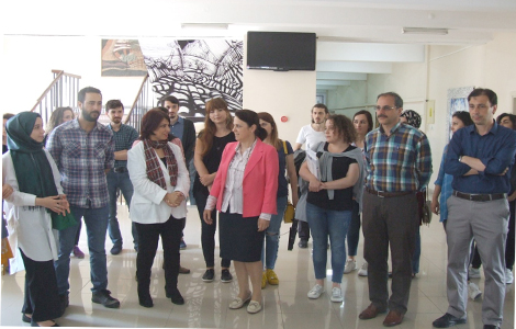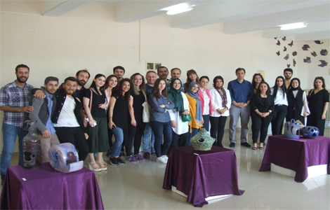 Serginin açılışında katkıları olan Dekan ve dekan yardımcılarına seramik bölümü öğretim görevlisi Hülya Sağlam tarafından birer seramik çalışması hediye edildi.