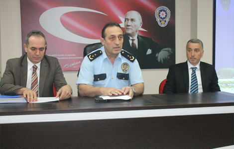 Trabzon Emniyet Müdürlüğü, Büyükşehir belediyesi UKOME ve Trabzon Umum Servis Araçları Odası tarafından düzenlenen eğitim proframa Trabzon Emniyet Müdürlüğü toplantı salonunda yapıldı. Eğitim programına trafik şube müdürü Turgay Özkan, UKOME başkan yardımcısı Erdoğan Sadıklar, Servis Araçları İşletmecileri Odası Başkanı Tayyar Demir ile odaya kayıtlı servisçiler katıldı. Trafik şube Turgay özkan, servis sürücülerini bilgilendirirken, mutlaka kurallara uymaları konusunda uyarıda bulundu. Özkan, "Okullar açıldı ve servisçilik başladı. Bunlar için gerekli izin ve prodedürlerle araçlarda bulunması gereken belgeler var. Minik çocukları taşıyorsunuz. Aileler size teslim ediyor. Çocuklar size emanet oluyor. Araçta bulunduğu sürece çocukların her türlü sorumluluğu size düşüyor. Çocukları taşırken kapısının önünde nizami bir şekilde alacaksınız. Binerken ve inerken siz de çocuklar da kurallara uyması lazım. Çocuklar trafiğe çok fazla dikakt edemez, burada size büyük görev düşüyor. Okula gittiğiniz zamanda okulun bahçesinde düzgün bir şekilde çocukları indireceksiniz. Kazalara sebebiyet vermemek için kurallara çok dikkat edeceksiniz. Araçlarınızı sürerken kurallara mutlaka uyacaksınız. kırmızı ışıkta geçme, hızlı seyretme yapmayacaksınız. kontrollerimiz sürecek ve kesinlikle müsammaya yer olmayacak. İlk okul ve okul öncesi eğitimde rehber personel istiyoruz, ortaokul ve lisederehber personel istemiyoruz. Sağlıklı bir şekilde kazasız belasız bir eğitim dönemi geçirelim. Denetimlerimiz çok sıkı olacak. Onun için kurallara uyun" dedi. Trabzon Servis Araçları Odası Başkanı Tayyar Demir, "Emniyet, Büyükşehir UKOME ve servis araçları odası iş birliği ile 2014-2015 eğitim öğretim yılında çalışma yapıyoruz. Yaptığımız çalışmalarda okullara giderek tüm arkadaşlarımızı bilgilendirdik. büyükşehir Belediyesi'ne de bu çalışmalarımızda bize araç tahsisinde bulunduğu için teşekkür ediyorum" diye konuştu. UKOME Müdür Yardımcısı Erdoğan Sadıklar'da belediyeden alınacak belgelerle alakalı sürücüleri bilgilendirdi. Konuşmaların ardından  Trafik Denetleme Şube Müdürlüğünde görevli polis memuru Samet Aslanbayrak tarafından servisçilere eğitim verildi.