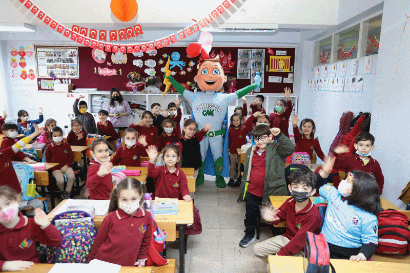‘Ayrıştırcan’ adlı Sıfır Atık ve Geri Dönüşüm Projesi Maskotu ile yapılan bilinçlendirme çalışması öğrenciler tarafından oldukça dikkat çekti.
