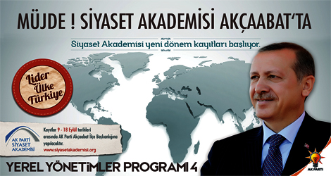 Cuma günü akşamı 20.00-22.00,Cumartesi günü sabah 10.00-14.00 saatleri arasında 6 hafta boyu devam edecek olup 36 saat sürecektir. Program sonunda katılımcılara genel merkez tarafından siyaset akademisi sertifikası verilecektir.Bu programa partili olsun ya da olmasın herkese açık olup tüm halkımız davetlidir.Kayıtlar 9-18 Eylül tarihleri arası Ak Parti Akçaabat İlçe başkanlığına yapılacaktır.