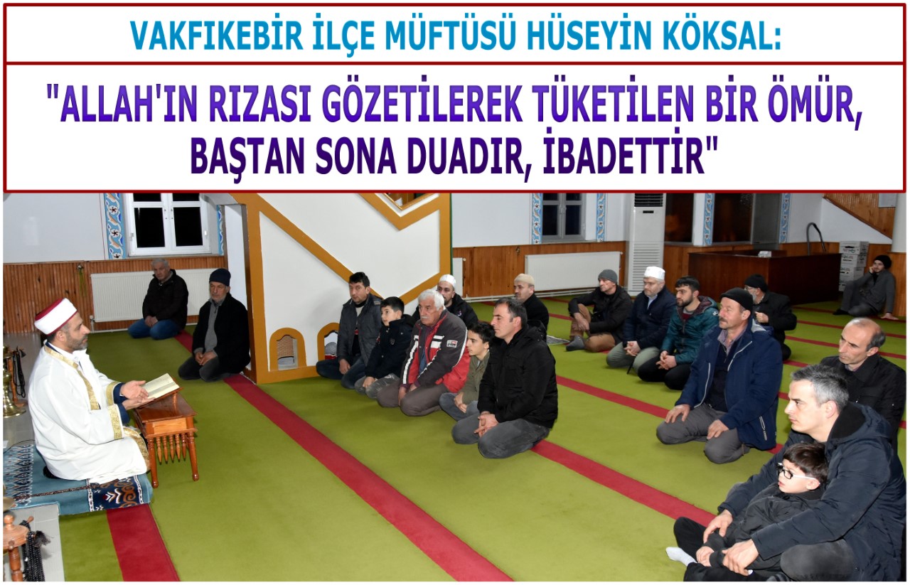 Vakfıkebir Soğuksu Mahallesi'nde düzenlenen sabah namazı buluşmasında konuşan İlçe Müftüsü Hüseyin Köksal, "Allah'ın rızası gözetilerek tüketilen bir ömür, baştan sona duadır, ibadettir." dedi.