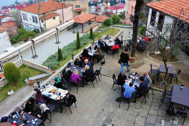 Tarihi Konak, yeşillikler içindeki bahçesi ve muhteşem manzarası ile “Geçmişin İçinde Yemek Keyfi” sloganı ve zengin menüsü ile hizmet vermeye başladı. Köy kahvaltısı, gözleme, mantı ve köftenin yanı sıra günlük menüleri, leziz ev yemekleri ve uygun fiyatlarıyla ilk günden beri büyük beğeni kazandı.