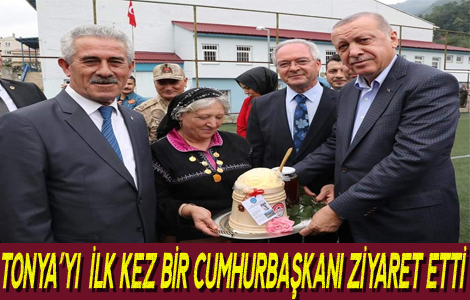 Beraberinde bulunan İçişleri Bakanımız Sayın Süleyman SOYLU, Çevre Şehircilik Bakanımız Sayın Murat Kurum, Ulaştırma ve Altyapı Bakanımız M. Cahit Turan, Sanayi ve Teknoloji Bakanı Sayın Mustafa Varank'tan oluşan heyetle ilçemize gerçekleştirilen bu ziyaret Tonya'mız için tarihi bir önem taşımaktadır. Zira ilçemiz kurulduğundan beri ilk defa bir Cumhurbaşkanı ağırlama şerefine nail oluştur.