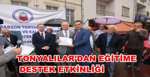 Tonyalılar Kültür Dayanışma ve Kalkınma Derneği tarafından düzenlenen “Eğitime Destek Etkinliği” Tonya Cumhuriyet Meydanı’nda yapıldı. AK Parti Trabzon Milletvekili Salih Cora, Tonya Kaymakamı Osman Sayılır, Tonya Belediye Başkanı Osman Beşel, Çarşıbaşı Belediye Başkanı Mümin Nuhoğlu, kurum amirleri, dernek eski başkanları, dernekten burs alan öğrenciler ve çok sayıda vatandaşın katıldığı etkinliğe, kemençe sanatçısı Ayhan Oğuz ve Sait Uçar’da verdikleri konserlerle renk kattı.