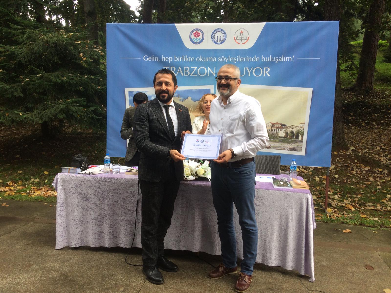 Moderatörlüğünü ve genel yürütücülüğünü KTÜ Edebiyat Fakültesi Öğretim Üyesi Prof. Dr. Ülkü Eliuz ile Türk Dili ve Edebiyatı Öğretmeni Ali Kemal Mutlu’nun üstlendiği projede ilk oturuma KTÜ Edebiyat Fakültesi Öğretim Üyesi Doç. Dr. Mustafa Zeki Çıraklı da konuk moderatör olarak eşlik etti.
