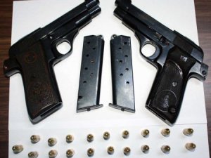Sürmeni ilçesinde, Emniyet Müdürlüğü Kaçakçılık ve Organize Suçlarla Mücadele ekiplerinin A.Y'ye ait araçta yaptığı aramada, 4 el yapımı tabanca ile şarjör ele geçirildi.