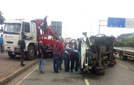 TRABZON'DA üç aracın karıştığı zincirleme kazada, içerisinde çok sayıda yolcu taşıyan minibüs devrildi. Kazada ikisi ağır 11 kişi yaralandı. Yaralı yolculardan Havva Çapan ile Veysel Aliş’in durumunun ağır olduğu öğrenildi.