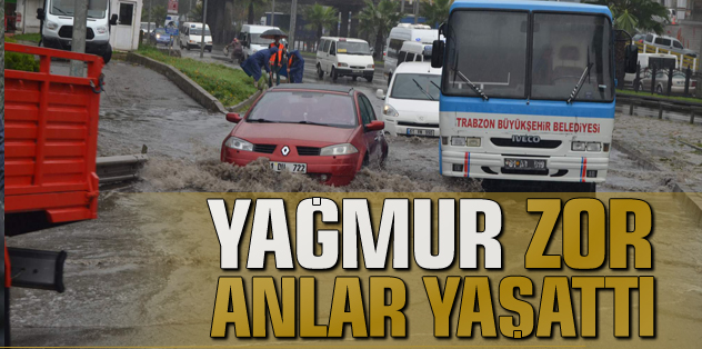 Trabzon’da etkili olan sağanak yağış sürücülere zor anlar yaşattı.