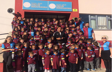 Düzköy Çayırbağı Yusuflu Ortaokulu Beden Eğitimi Öğretmeni Levent Mumcu’nun girişimi Trabzonspor yöneticisi Dış İlişkiler Sorumlumuz Sayın Ahmet Fikret GÖKHAN Okul öğrencilerine forma hediye etti.