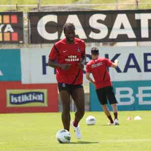 Gruplar halinde birkaç gündür antrenmanlarını sürdüren ve bugün ilk kez toplu bir çalışmada birlikte yer alan futbolcular, pas ve top sürme çalışmasının ardından yarı sahada top kapma antrenmanı gerçekleştirdi. Bordo mavili oyuncuların neşeli halleri dikkat çekerken, özellikle Alanzinho sık sık takım arkadaşlarına takıldı ve antrenmanın neşesi oldu. Zokora ile güreşen Alanzinho, topla yaptığı hareketlerle de göze battı. Antrenmanın son bölümünde Halil Altıntop ve Alanzinho fisyoterapist eşliğinde düz koşu yaptı.