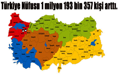 Türkiye Nüfusu bir önceki yıla göre 1 milyon 193 bin 357 kişi arttı..