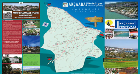 Turizm haritasında tarihi, turistik yerler, belde ve köyler ile Akçaabat’la ilgili birçok ayrıntılı bilgiler yer almaktadır.