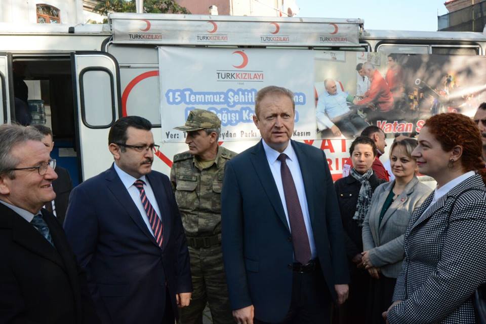 15 Temmuz Demokrasi Şehitleri Hatırası kapsamında düzenlenen kampanyaya katılan Valimiz Yücel Yavuz, İl Jandarma Komutanı Albay Okçin Akşit ve Emniyet Müdürü Ahmet Hakan Arıkan kan bağışında bulunarak kampanyaya destek verdiler.