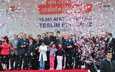 Başbakan Erdoğan, Erciş depreminin ardından TOKİ tarafından inşa edilen afet konutlarının anahtar teslim ve sosyal tesislerin açılış törenine katıldı.