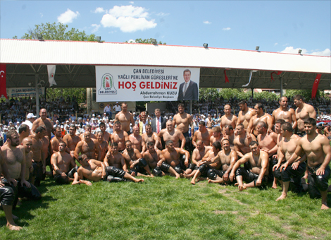Çan Belediyesi'nce düzenlenen yağlı güreşler ilçe merkezinde kortej yürüyüşüyle başladı. H. İbrahim Bodur Stadyumu’na Kırkpınar davul zurnalarıyla giren Çan Belediye Başkanı Adurrahman Kuzu ve Akçaabatlı ağa Yakup Köse, Eski kırk pınar ağası Murat Köse er meydanında seyirciyi selamladı. Eski Hatip Lisesi Müdürü Ahmet Kocabaş’ın yaptırdığı dua ile güreşler başladı.