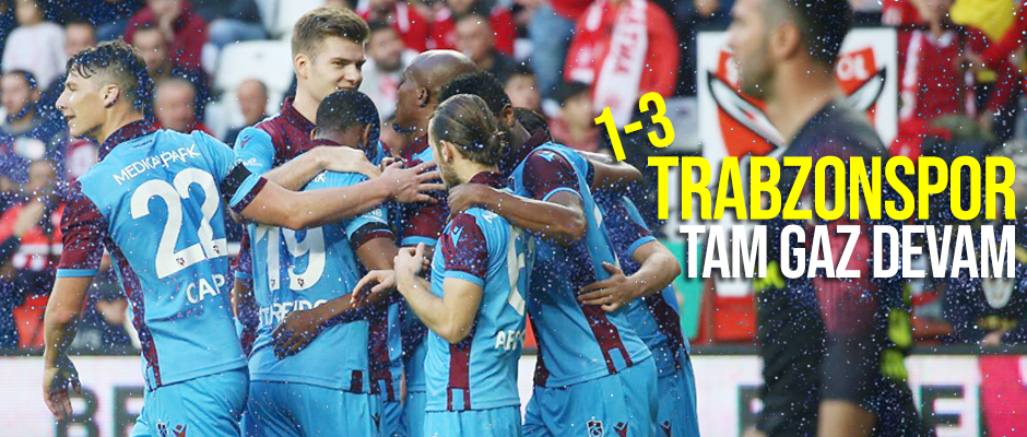 Sturridge’in iki asist yaptığı maçta bordo-mavililere 3 puanı getiren golleri Sörloth, Nwakaeme ve Yusuf attı. Süper Lig’de geçtiğimiz hafta Galatasaray karşısında son dakikada yıkılan ve sahadan 1 puanla ayrılan Trabzonspor, Antalya deplasmanında moral buldu. Cezalı Sosa ve sakat Pereira’nın yokluğunda zorlu maça mutlak 3 puan için çıkan bordo-mavililer 3. dakikada golü buldu. Sturridge'in mükemmel pasında topu alan Sörloth, çaprazdan vurup kaleci Ferhat’ı avladı ve bordo-mavililer 1-0 öne geçti.
