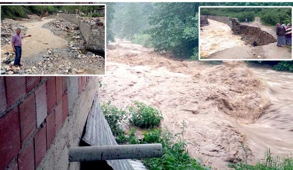 Giresun Görele’nin yükseklerinde yarım saat süreyle devam şiddetli yağış maddî hasara neden oldu. Görele’nin Soğukpınar Köyünde DSİ tarafından yapımı devam eden taşkın önlem duvarlarının bir kısmını sel yıktı. Köyünde maddi hasar oluştuğunu belirten Soğukpınar Köyü Muhtarı Birol Medik,“Öğle saatlerinden sonra köyün yukarısı olan Sisdağı’nın eteklerinde başlayan yağmur git gide şiddetini artırdı. Özellikle 30 dakika süreyle bardaktan boşanırcasına devam eden yağmur köyümüzün içinden geçen Çömlekçi Deresinin taşmasına neden oldu. Çömlekçi Deresinin çevreye zarar vermemesi için DSİ tarafından yapımı devam eden duvarların bir kısmını da sel yıktı. Duvarın yıkılmasından sonra köyün içindeki anayolun bir kısmını da sel aldı. Bazı tarlalarda da ufak çapta da olsa heyelanlar oluştu. Benim evimde Çömlekçi Deresinin kıyısında. Balkonun altında tahtalarım vardı. Bu tahtaları da sel alıp götürdü. Yağış Allah’tan uzun süre devam etmedi. Yoksa daha çok zarar meydana gelebilirdi.” dedi.