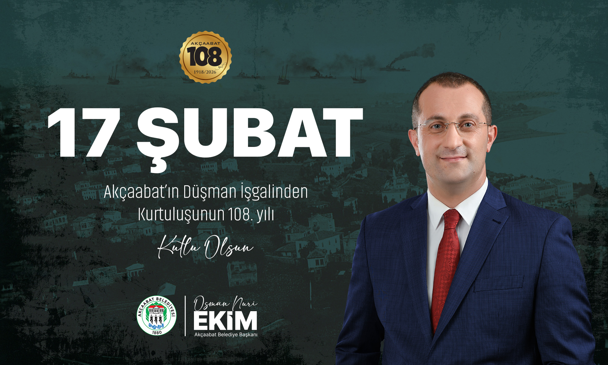 Akçaabat Belediye Başkanı Osman Nuri Ekim, 18 Mart Çanakkale Zaferi ve Şehitleri Anma Günü dolayısıyla bir mesaj yayımladı.