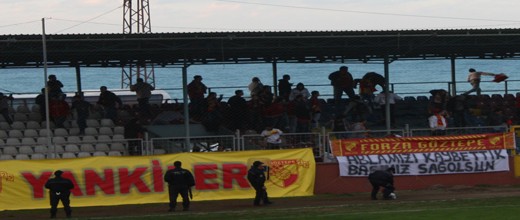 Akçaabat Sebatspor Göztepe karşılaşması sonrası istenmeyen olaylar yaşandı. Göztepeli taraftarlar koltukları kırıp Sebat taraftarına attı.
