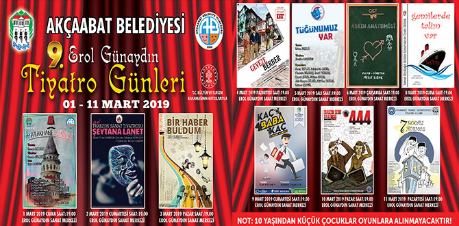 Akçaabat Belediyesi Kültür ve Sosyal İşler Müdürlüğü'nce, kültürel gelişmeye katkı sağlamak, insanlara bir toplum ve yaşam bilimi olan tiyatroyu sevdirmek, şehrin kültür ve sanat hayatını canlı tutabilmek adına düzenlenen "Erol Günaydın Tiyatro Günleri"nin 10'uncusu 2-10 Mart 2022 tarihlerinde tiyatroseverlerle buluşuyor.