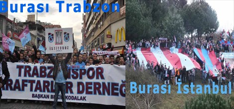 Trabzonspor taraftarları,şampiyonluk kupasının Trabzonspor'a verilmesini istedi.