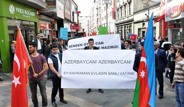 Trabzon’da, Ermenilerin ateşkes ihlali ile Azerbaycan’la arasında yaşanan çatışmalarla ilgili yürüyüş düzenlendi.