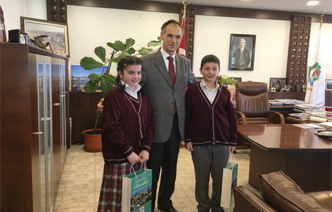 Ziyaret sonunda Başkan Türkmen öğrencilere çeşitli hediyeler takdim etti.