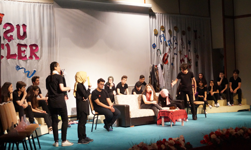 Okul etkinlikleri kapsamında 9 ve 10 sınıf öğrencileri tarafından hazırlanan tiyatro Şehit Samet Uslu Kız Anadolu İmam Hatip Lisesi Konferans salonunda yapıldı.
