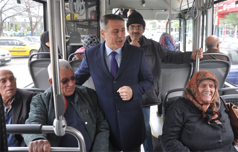 Seçim çalışmalarımızı yürütürken zaman zaman belediye otobüsüne bindim. Bindiğimde vatandaşlar çok şaşırdı. Ama bir o kadar da sevindi. Bana “Başkanım seçildikten sonra da böyle zaman zaman otobüste yolculuk yapacak mısınız?” diye sordular. “Ben halkın içerisinden geldim. Halk adamıyım. Halkımla beraber olmak bana mutluluk veriyorum. Elbette yine yapacağım.” dedim. Bunu yaparak ancak vatandaşlarımla daha iyi iletişim kurabilir, onları dinleyebilir, onlarla hasbihâl edebilirim. Elbette resmî makamlarda da hemşehrilerimizi dinleyeceğiz ama otobüste, sokakta, evindeki samimiyeti makamda yakalayamayız. Mahalle mahalle dolaşıp halk günleri yapacağız. Belediyemizin kapısı da sonuna kadar açık olacak.