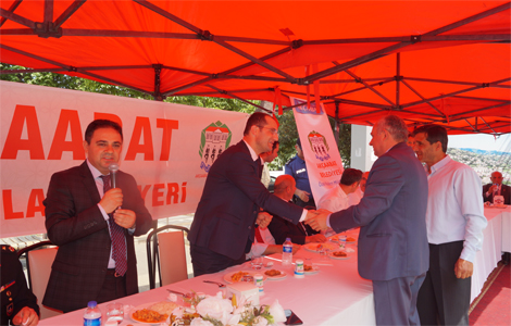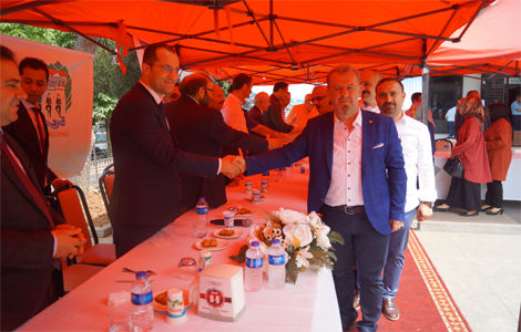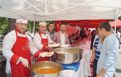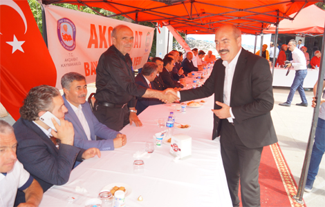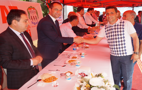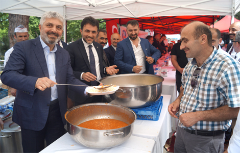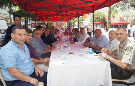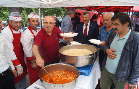 Akçaabat’ta düzenlenen bayramlaşma töreninde Cemil usta tarafından pişirilen nohut, pilav tatlı ve ayran ikram edildi.