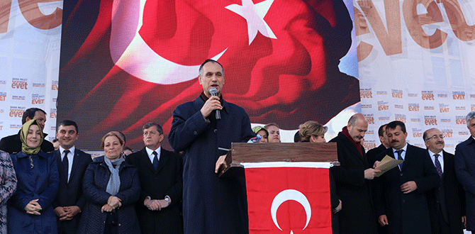 16 Nisan'da yapılacak referandum kapsamında çalışmalarını sürdüren Bakan Soylu Trabzon'un en büyük ilçesi Akçaabat'ta miting düzenledi.