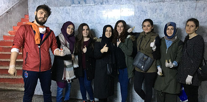 Üniversite öğrencilerinin ‘Topluma Hizmet’ dersi kapsamında düzenlediği alt geçit temizleme çalışmaları, Akçaabat Belediyesi Temizlik İşleri Müdürlüğü ekipleri ile gerçekleştirildi. İki gün boyunca devam eden temizlik çalışmalarında alt geçide izinsiz olarak yapıştırılan posterler çıkartıldı; duvarlar temizlendi ve alt geçide atılan çöpler toplandı. Vatandaşların yoğun olarak kullandıkları alt geçidin temiz ve sıhhi olmasına özen gösteren Belediye personelleri, alt geçidi tazyikli suyla yıkayarak öğrencilerle birlikte yapılan temizlik işlemini tamamlamış oldu.
