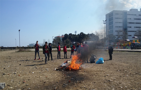 Çöplerin bir kısmı Akçaabat Haçkalı Baba Devlet Hastahanesi çöp konteynırlarına atılılırken geri kalan kısmı ise sahilde ateş yakılarak imha edildi.