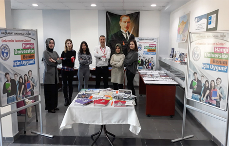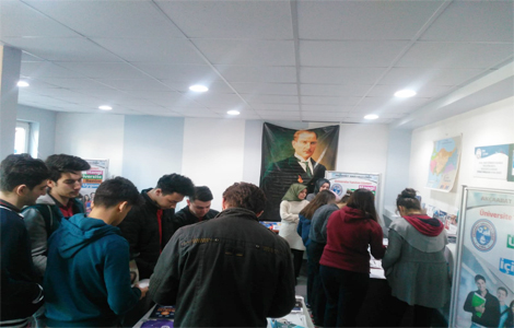 Okulda açılan Üniversite Tanıtım standında, ülkemizde bulunan üniversiteleri yazılı ve Görsel materyallerle öğrencilere tanıtıyor.