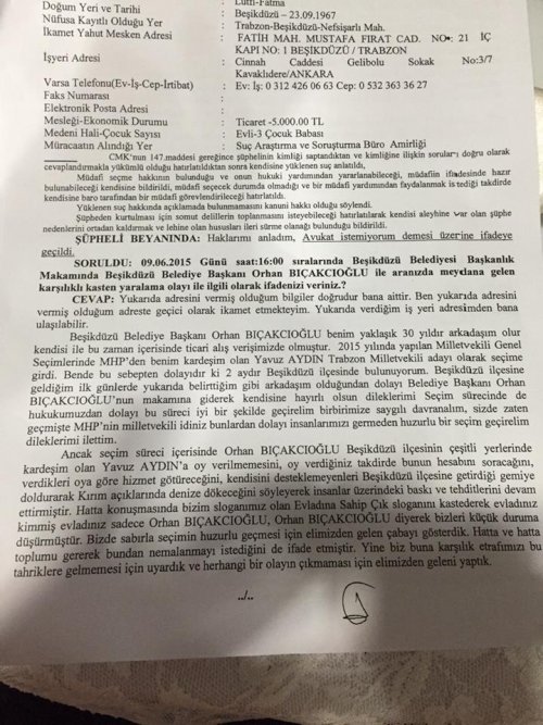 İşte Fikret Aydın'ın vermiş olduğu ifadenin tam metni: